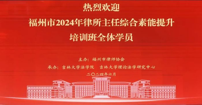 福州市律師協(xié)會2024年律所主任綜合素能提升培訓(xùn)班開班 福州律師資訊發(fā)布者 福州律師網(wǎng)2024年6月4日福州市律師協(xié)會于2024年6月2日至7日,在吉林大學(xué)舉辦福州律協(xié)2024年律所主任綜合素能提升培訓(xùn)班。培訓(xùn)班于2024年詳情