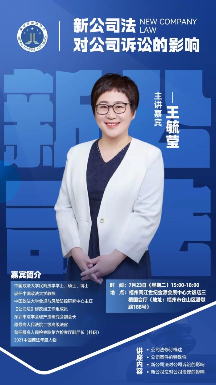 福州市律師協(xié)會(huì):大咖來講!7月23日聽王毓瑩教授解讀新公司法 福州律師資訊發(fā)布者 福州律師網(wǎng)2024年7月15日一、講座主題 新公司法對(duì)公司訴訟的影響 二、主辦單位 福州市律師協(xié)會(huì)、廈門仲裁委員會(huì) 福州市破產(chǎn)管理人協(xié)會(huì) 三、主講嘉賓詳情