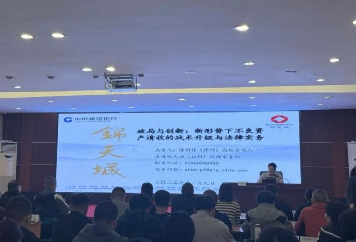 錦天城福州律師事務所律師連續(xù)受邀為建行、郵儲銀行福建省分行開展金融法律專題培訓 福州律師資訊發(fā)布者 福州律師網(wǎng)2025年11月18日近期,本所律師憑借在金融法律領域的深厚積淀與實務專長,連續(xù)受邀為中國建設銀行福建省分行、中國郵政儲蓄銀行福建省分行開展專詳情
