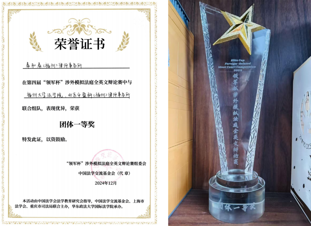 此次比賽,不僅是對泰和泰(福州)律師事務所律師專業(yè)素養(yǎng)及涉外法律實務能力的展示,也是我所在高層次涉外法律服務領域人才培養(yǎng)方面的重要嘗試,以期在未來的國際法律事務中,為客戶提供更加專業(yè)、高效的涉外法律服務。