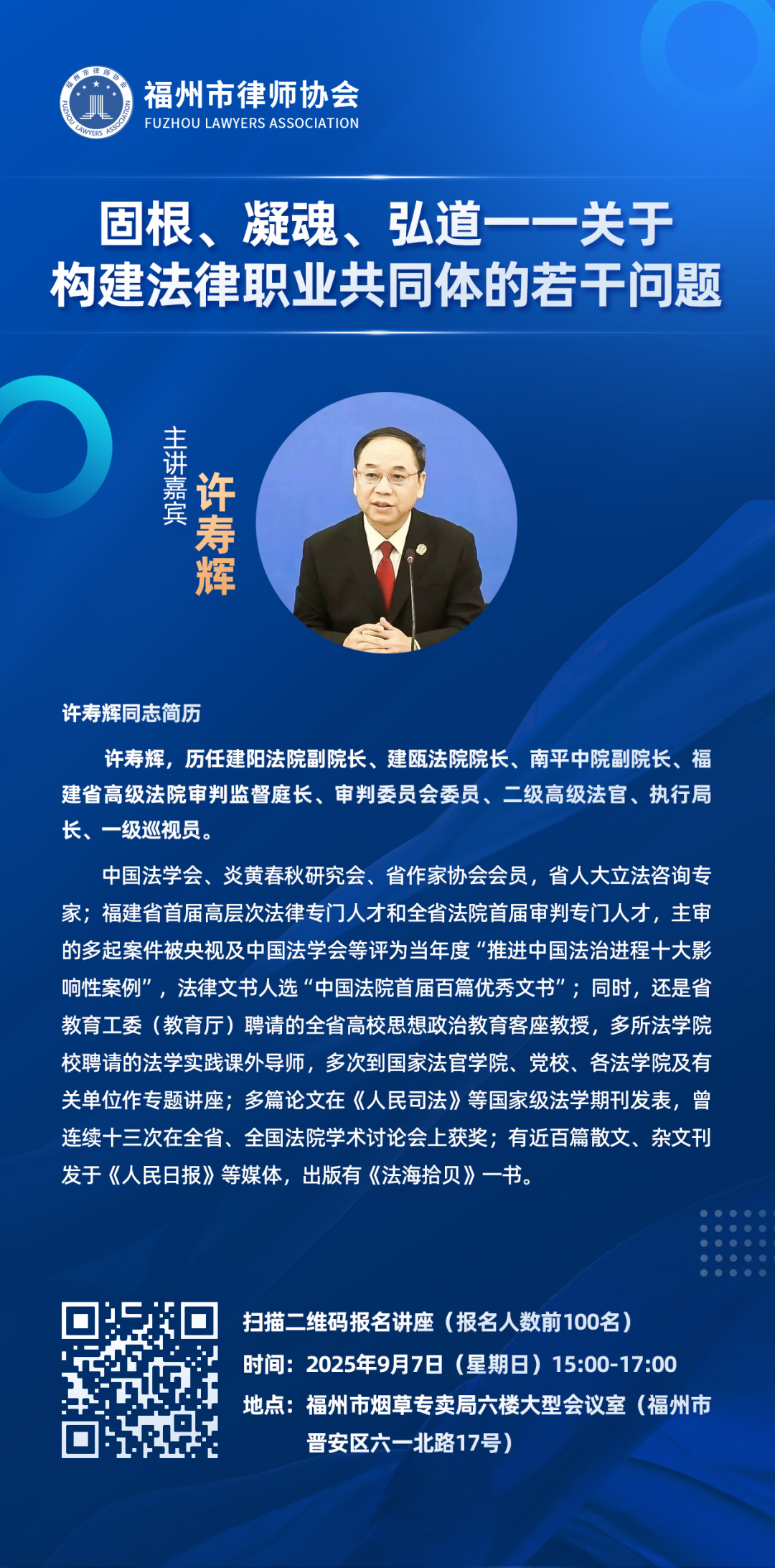 講座預(yù)告:福州律協(xié)舉辦“固根、凝魂、弘道——關(guān)于構(gòu)建法律職業(yè)共同體的若干問(wèn)題”講座分類: 福州律師資訊2025年9月4日 福州律師資訊 分享此文文章導(dǎo)航上一個(gè)上一篇文章以規(guī)范促發(fā)展 以合規(guī)筑根基——福州律協(xié)聯(lián)合倉(cāng)山區(qū)司法局成功舉辦律所規(guī)范化管理與建設(shè)主題沙龍下一個(gè)下一篇文章福州律師評(píng)析:別拿“包養(yǎng)”偽裝“嫖娼”!你眼里的贈(zèng)與款項(xiàng)實(shí)際可能是嫖資!相關(guān)文章盈科福州律師助力天津?yàn)I海建投集團(tuán)成功發(fā)行2025年可持續(xù)發(fā)展境外債券2025年9月10日福州市律師協(xié)會(huì)“固根、凝魂、弘道”主題沙龍順利舉辦,共話法律職業(yè)共同體建設(shè)之路2025年9月10日福州蔡思斌律師接受《福建法治報(bào)》專訪,解讀AI亂象的法律邊界2025年9月9日福州市律師協(xié)會(huì):海絲中央法務(wù)區(qū)福州片區(qū)法律服務(wù)功能區(qū)建設(shè)工作推進(jìn)會(huì)召開2025年9月8日福州市律師協(xié)會(huì):交流促提升 共話謀發(fā)展——武漢市律師協(xié)會(huì)到我會(huì)座談交流2025年9月8日共燃愛(ài)國(guó)之情 砥礪法治初心——福建律師行業(yè)集中觀看九三閱兵盛況2025年9月5日