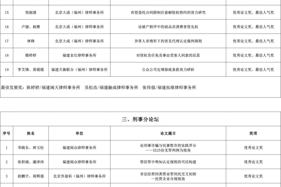 2024年度福州律師論壇專業(yè)分論壇圓滿收官 福州律師資訊發(fā)布者 福州律師網(wǎng)2024年7月5日2024年6月30日,年度福州律師論壇專業(yè)分論壇正式落下帷幕。此次分論壇作為福州律師論壇的重要組成部分,吸引了廣大律師積詳情