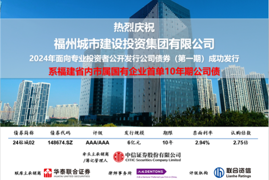 大成福州律師助力福州城投集團(tuán)成功發(fā)行6億元公司債券 福州律師資訊發(fā)布者 福州律師網(wǎng)2024年4月3日2024年4月1日,福州城市建設(shè)投資集團(tuán)有限公司(簡稱“福州城投集團(tuán)”)2024年面向?qū)I(yè)投資者公開發(fā)行公司債券(第一期詳情