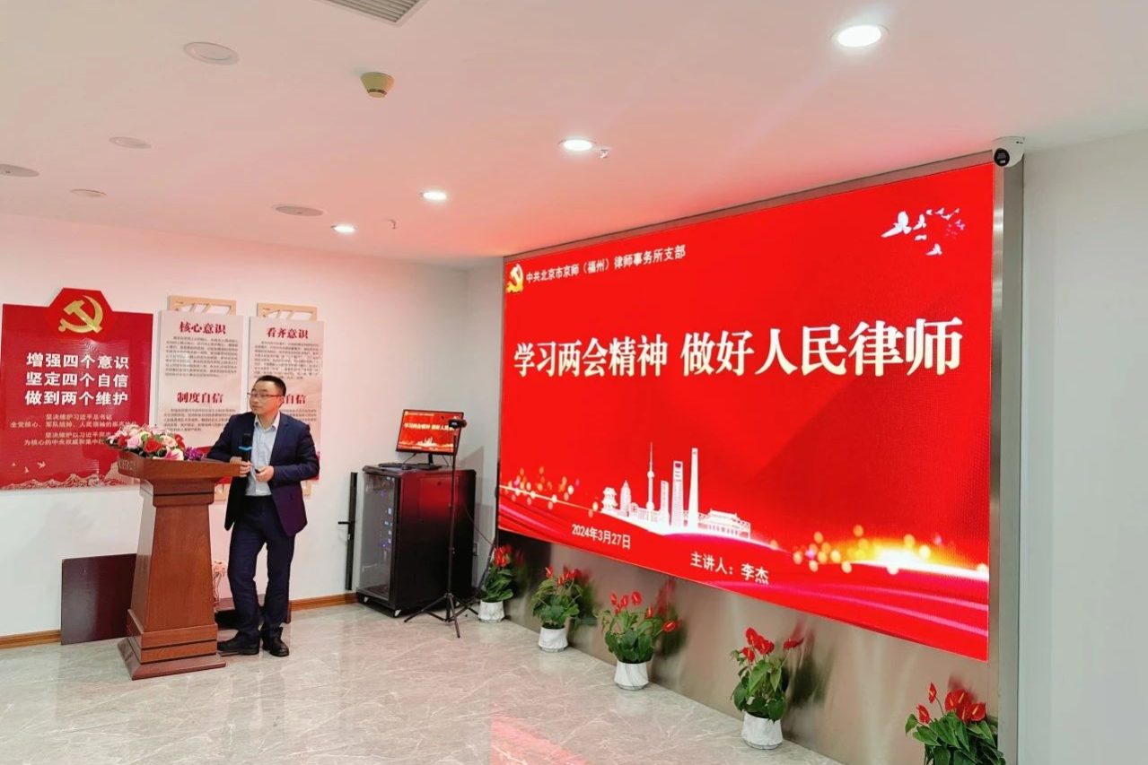 北京市京師福州律師事務(wù)所黨支部召開主題黨課 福州律師資訊發(fā)布者 福州律師網(wǎng)2024年3月28日為深入學(xué)習(xí)貫徹兩會精神,緊跟兩會動態(tài),切實把思想和行動統(tǒng)一到黨和國家的決策部署上來,2024年3月27日上午,北京市京師詳情