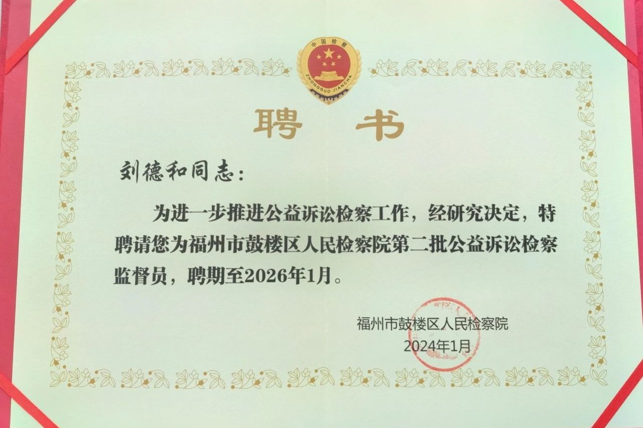 華泰福州律師事務(wù)所劉德和律師獲聘福州市鼓樓區(qū)人民檢察院公益訴訟檢察監(jiān)督員 福州律師資訊發(fā)布者 福州律師網(wǎng)2024年3月12日為深入貫徹落實黨的二十大精神,推動人民監(jiān)督與為民司法有機(jī)結(jié)合,更大范圍動員社會力量參與公益訴訟檢察工作,最大限度凝聚守護(hù)詳情