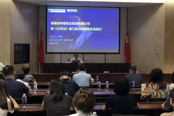 大成福州律師受邀為和格實(shí)業(yè)集團(tuán)開展新《公司法》要點(diǎn)解讀和實(shí)務(wù)指引講座 福州律師資訊發(fā)布者 福州律師網(wǎng)2024年7月24日近日,大成福州合伙人王澤聰律師受邀為福建省和格實(shí)業(yè)集團(tuán)有限公司(以下簡稱和格實(shí)業(yè)集團(tuán))開展《新<公司法>修訂詳情